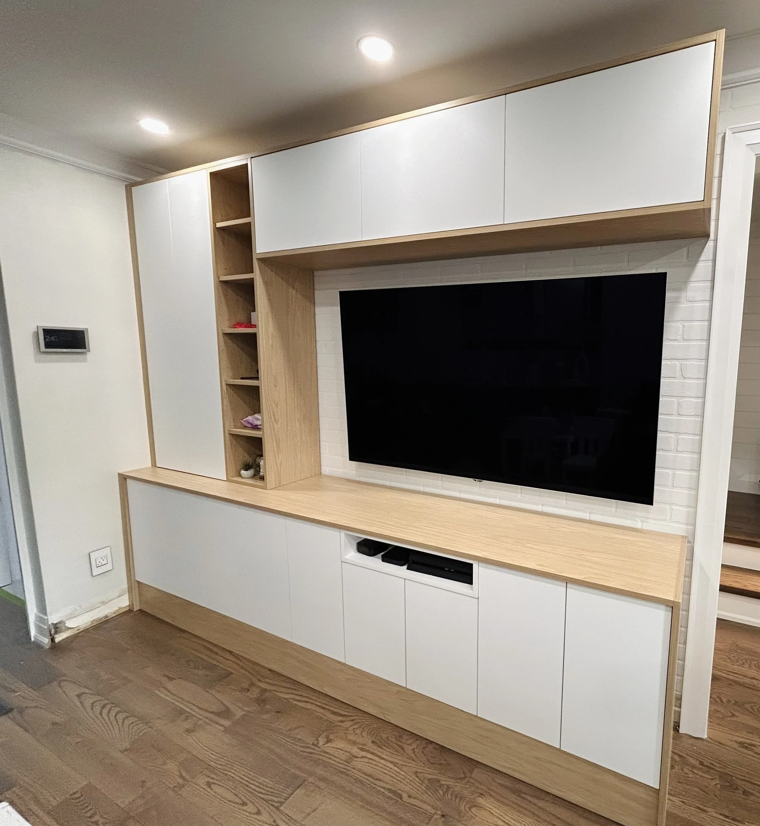 Feature walls, entertainment units, mudrooms, closets, and custom storage — designed to integrate seamlessly into your home.